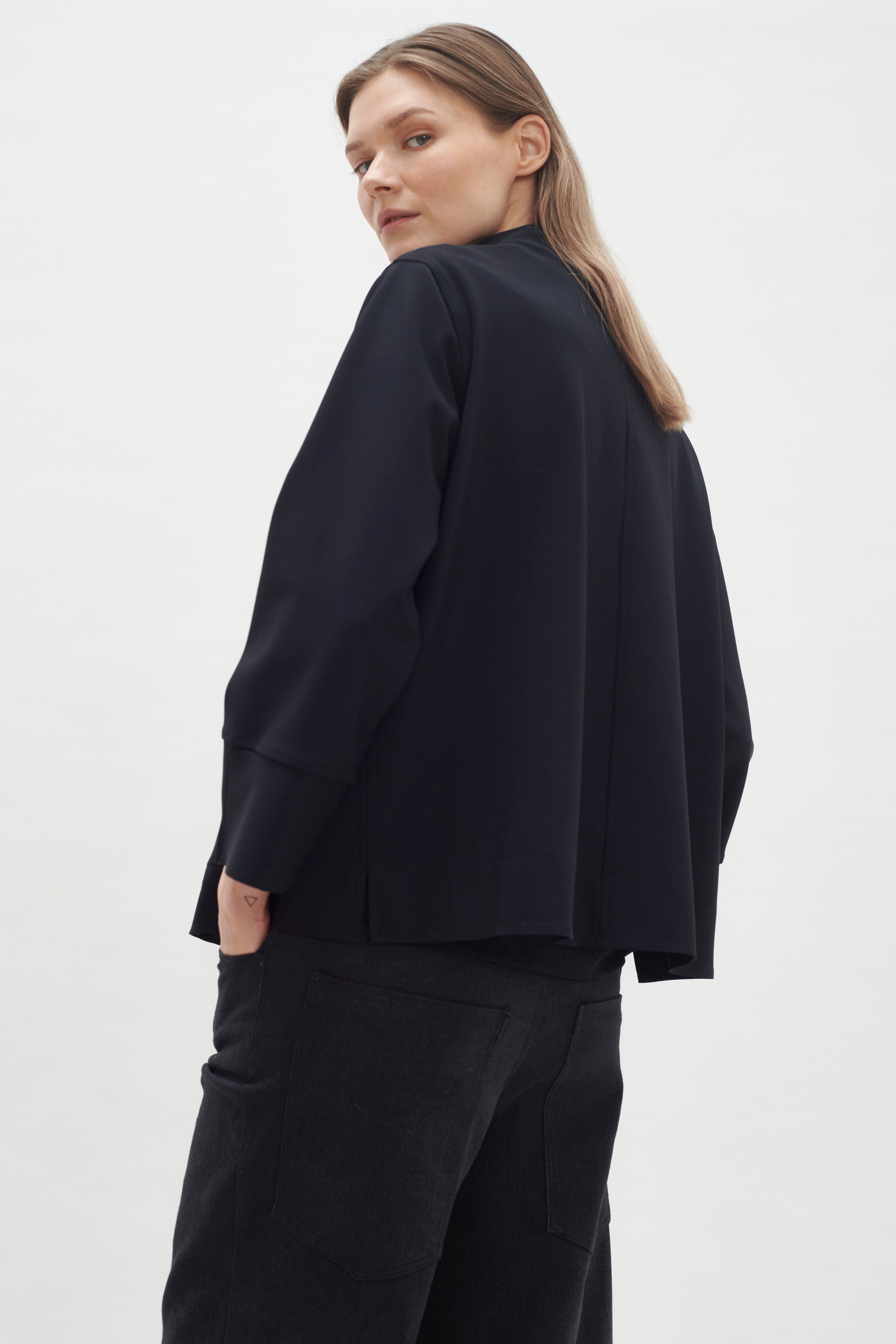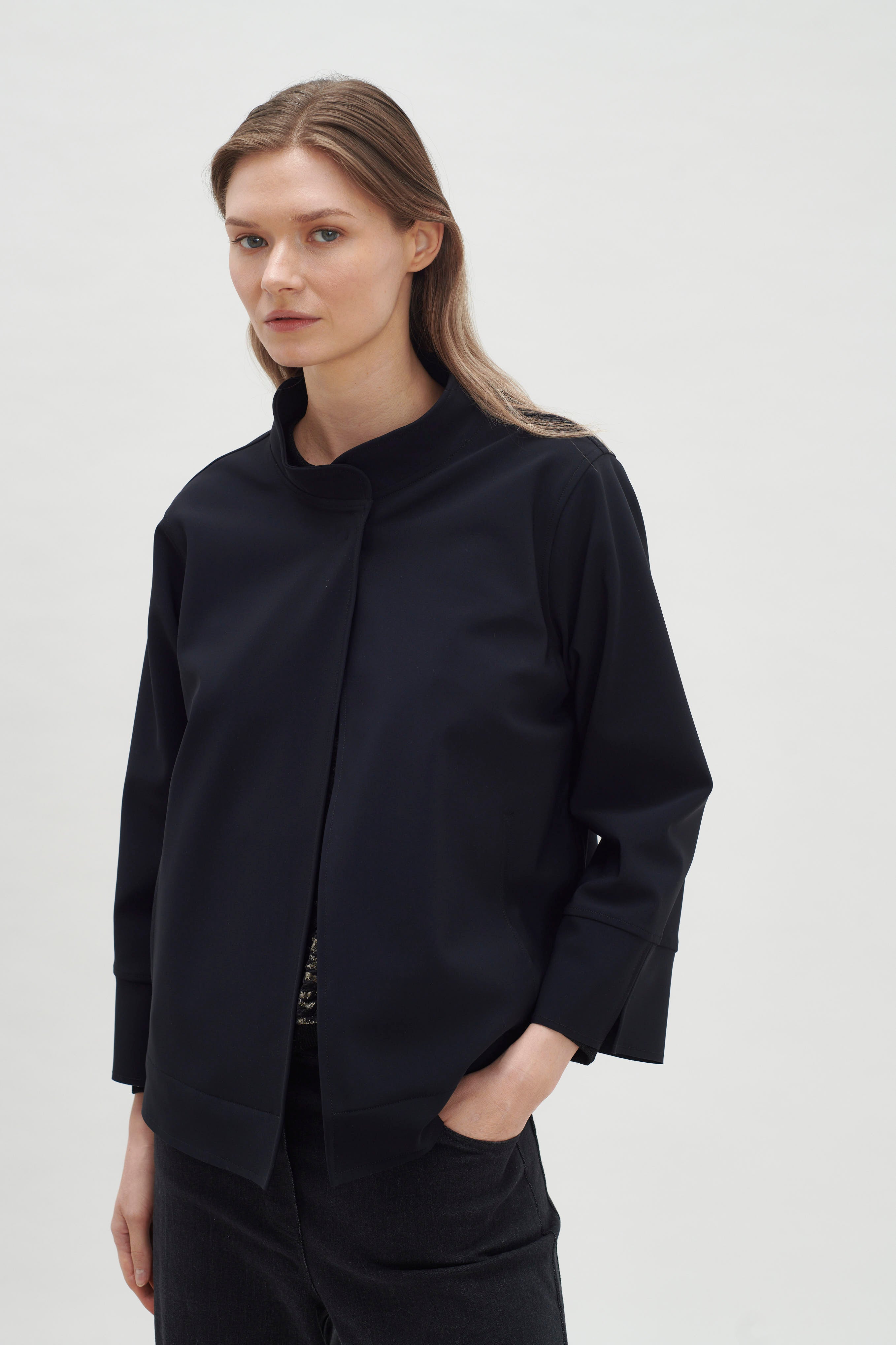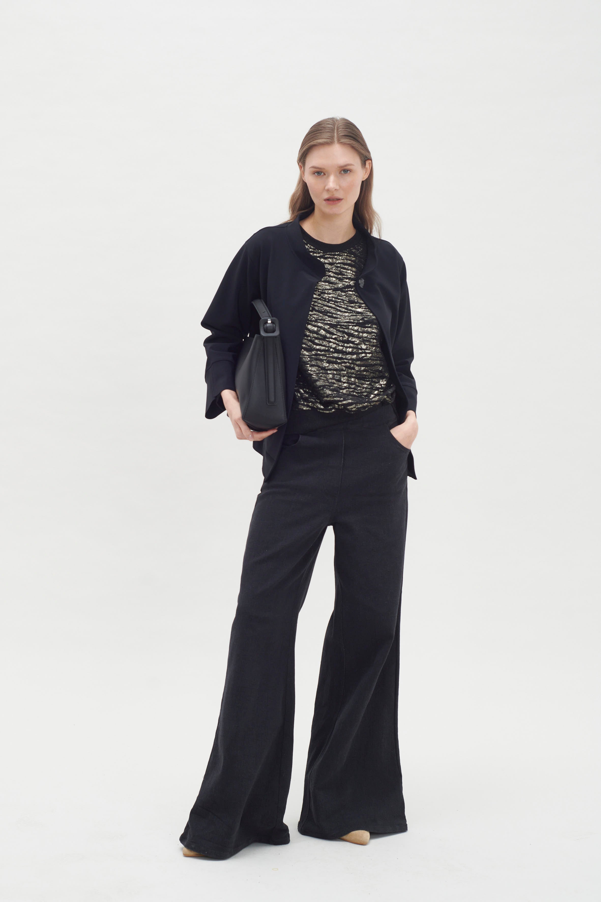 Gabardina en forma de evasé de neopreno es una pieza chic, atemporal y lujosa que aporta un toque de sofisticación a cualquier look. Su diseño en evasé, que se ajusta suavemente al cuerpo y se ensancha hacia abajo, realza la silueta de manera elegante, ofreciendo un efecto favorecedor para diferentes tipos de figura.