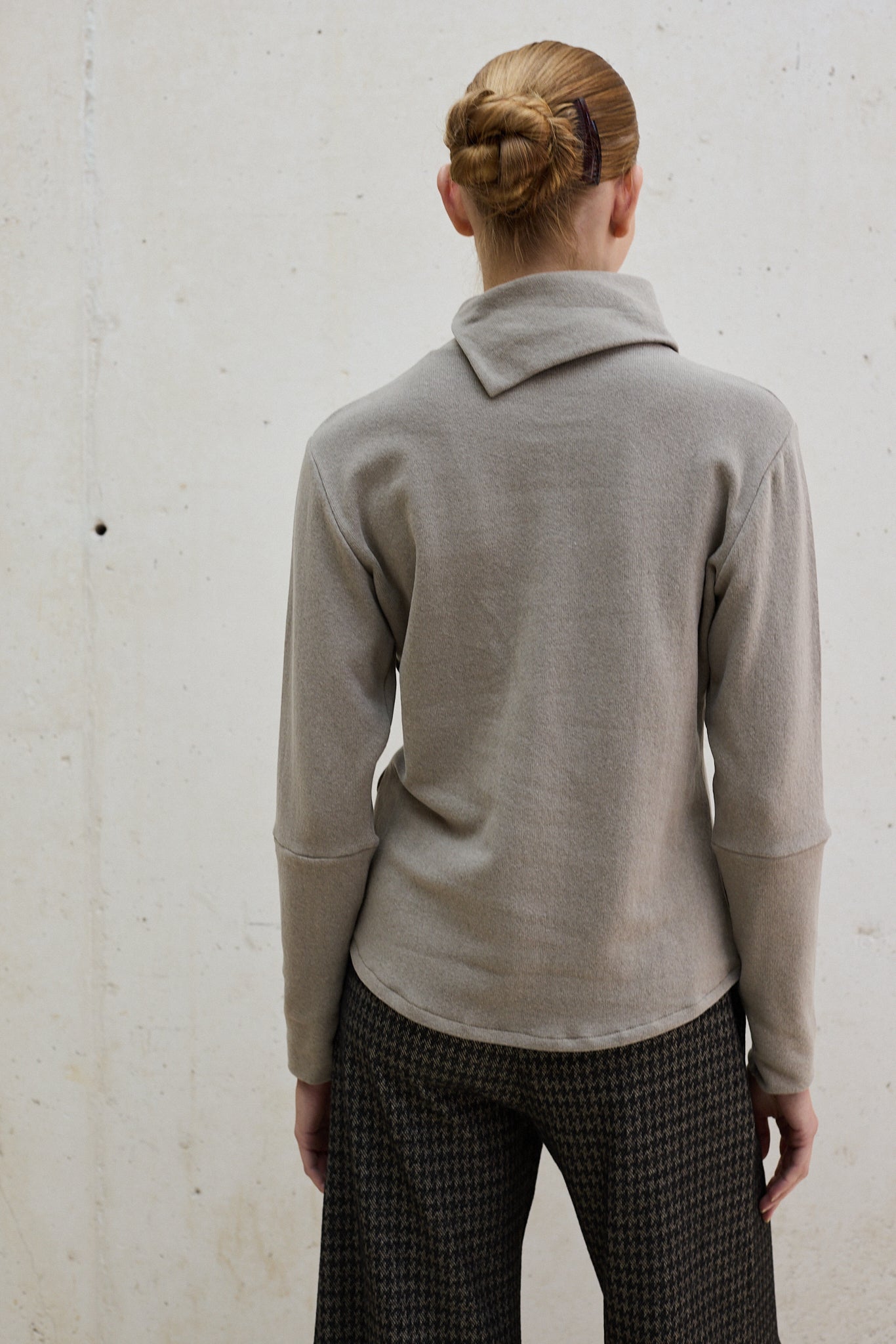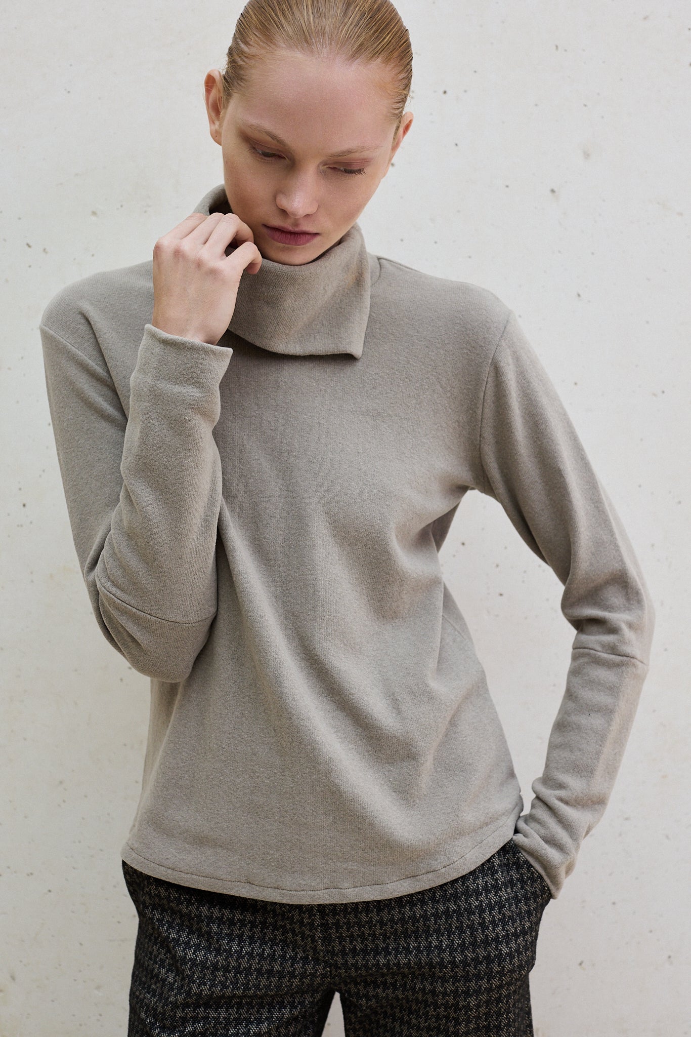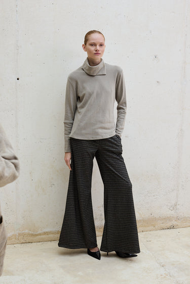 Este jersey de algodón ecológico presenta un cuello medio vuelto que aporta un toque femenino y sofisticado. Perfecto para realzar cualquier conjunto, se combina fácilmente con pantalones o faldas para crear un estilo elegante y versátil.